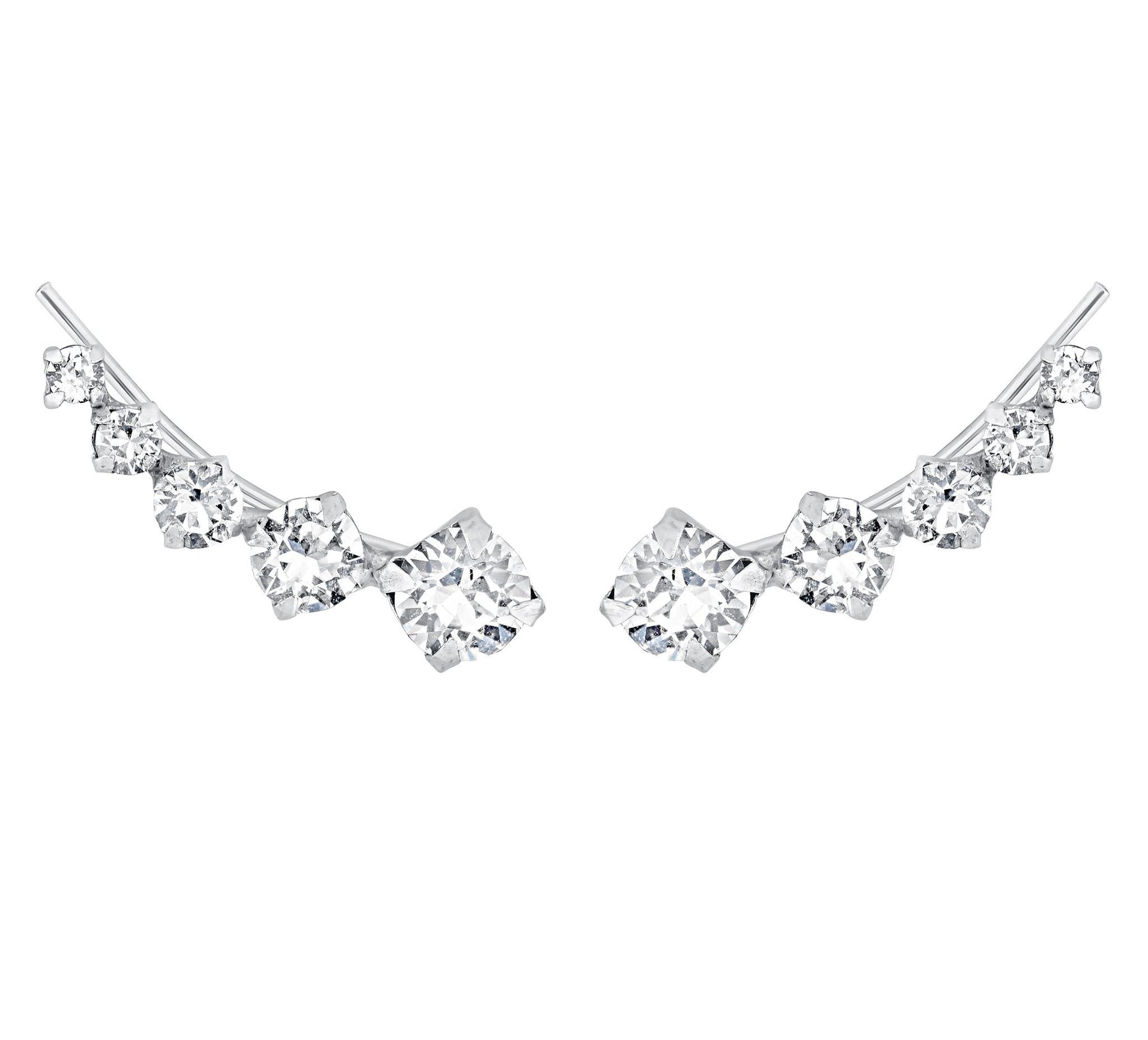 These sparkling ear climbers feature a 925 Sterling Silver setting with glittering Swarovski crystals. Attaches on the lobe with an adjustable pin