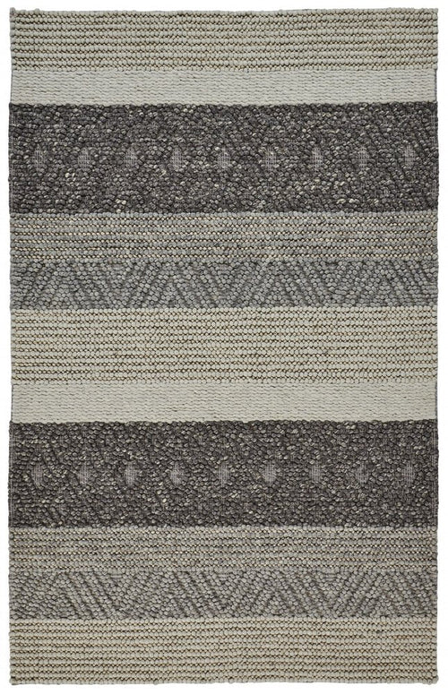 10' X 13' Gray Black And Taupe Wool Striped Hand Woven Area Rug