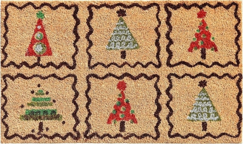 17" X 29" Natural Red and Black Coir Christmas Trees Outdoor Christmas
