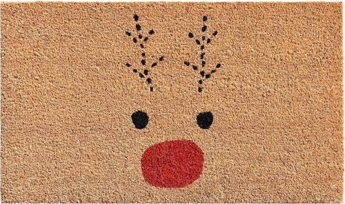 17" X 29" Red and White Coir Reindeer Outdoor Christmas Door Mat