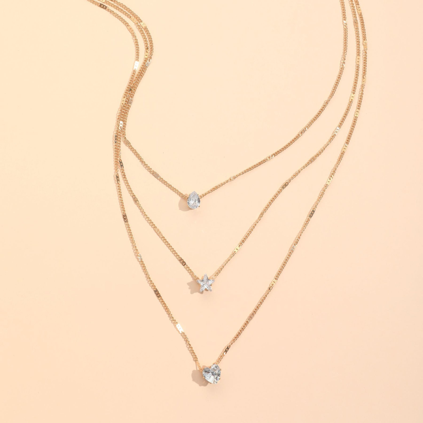 Zircon Necklace Multi-layer Five-pointed Star Love Water Drop Pendant
