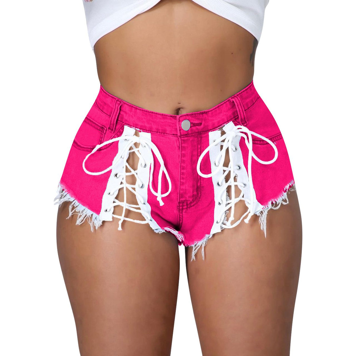 Women Clothing Lace-up Micro Tassel Denim Hot Pants Summer Women