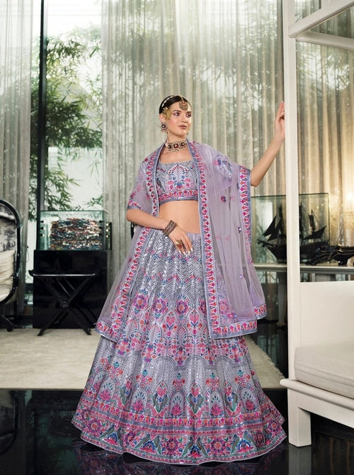 Give in to the exotic confluence of today and tomorrow in this beautiful attire. Women splendor is magnified tenfold in this alluring Violet Sequin and Thread Work Designer Semi Stitched Lehenga Choli. The ethnic embroidered, sequins and thread work for the apparel adds a sign of magnificence statement with your look. Comes with matching choli and dupatta. (Slight variation in color, fabric & work is possible. Model images are only representative.)