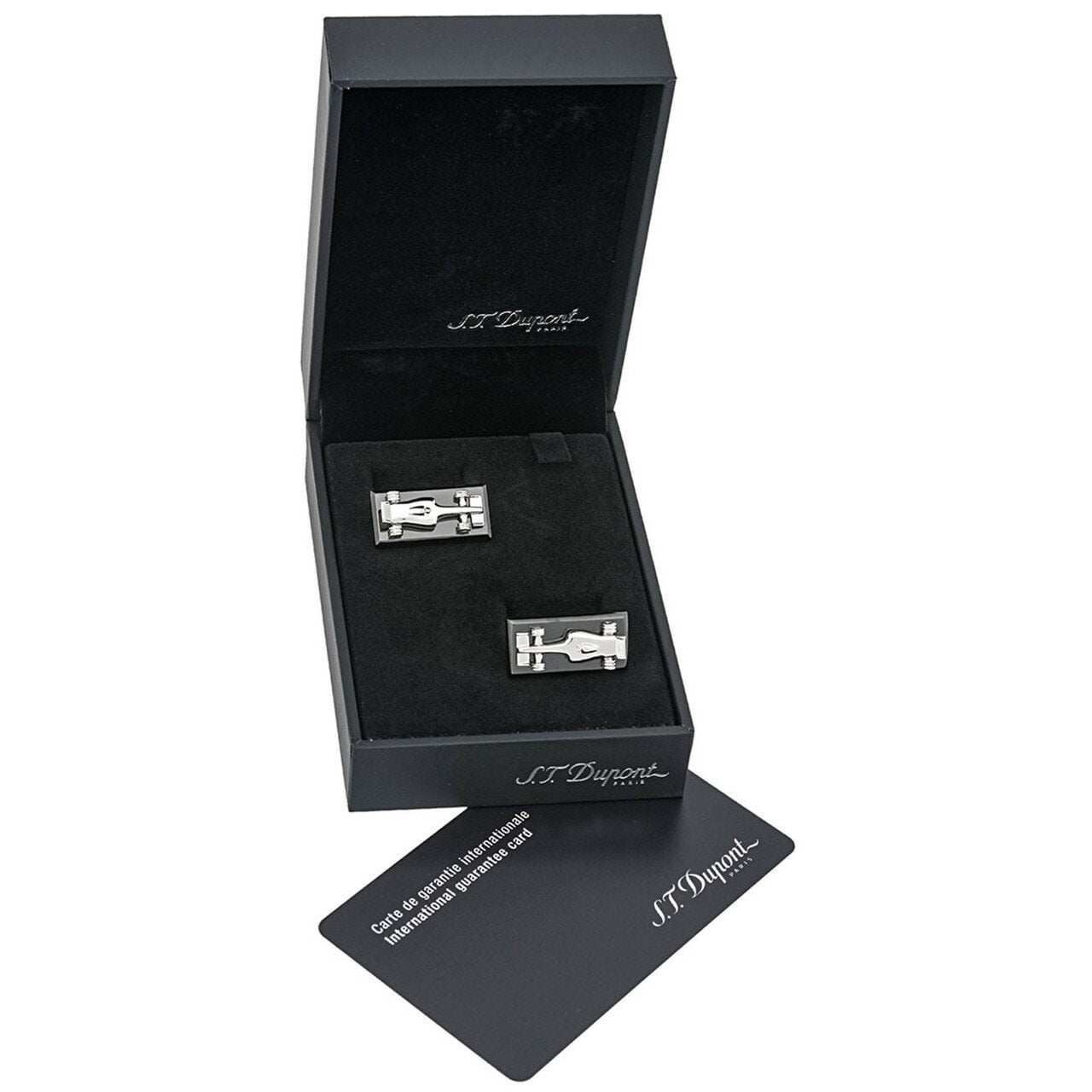 S.T. Dupont McLaren Race Car Cufflinks is a collaboration of 2 legendary names who have built their success and reputation around a permanent quest for innovation, performance and excellence. S.T. Dupont pays homage to the 50th anniversary of McLaren Grand Prix racing with defi collection. Celebrating precision and British industry, these S.T. Dupont McLaren Race Car Cufflinks are designed for and inspired by The McLaren Formula 1 racing team. For over 50 years, McLaren has been one of the most successful teams in Formula 1 history. These Limited edition S.T. Dupont McLaren cufflinks from the Defi collection are elegantly showcased in black PVD* and Stainless Steel and makes and ideal gift for Grand Prix lovers. The S.T.Dupont and McLaren logos are featured on the reverse of each cufflink. This collection is limited to 1966 pieces – year of the first Grand Prix Race. The S.T. Dupont McLaren Race Car Cufflinks are bold and edgy and are the perfect way to distinguish yourself in a world of monotony. Amplify your favorite formal look with these S.T. Dupont McLaren Race Car Cufflinks that never skimp on style.